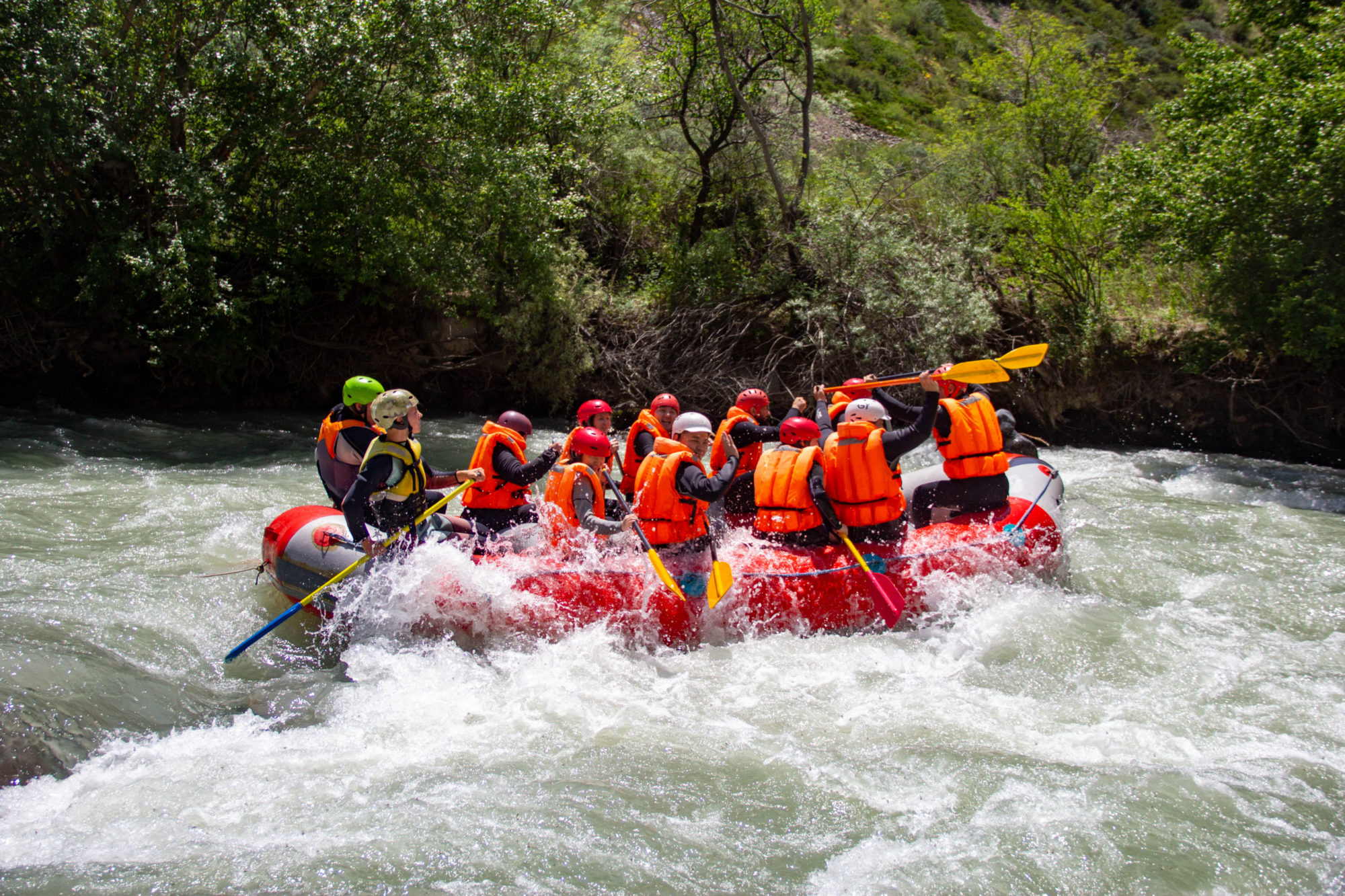 10:30–12:30 — Рафтинг по реке Чу (сложность 2–3), подготовка и инструктаж, 2 инструктора