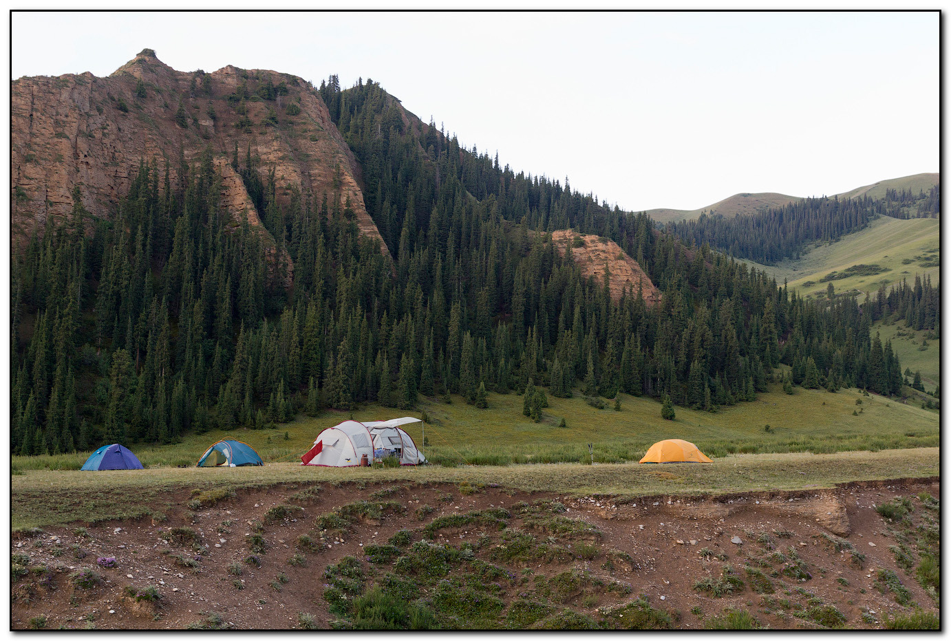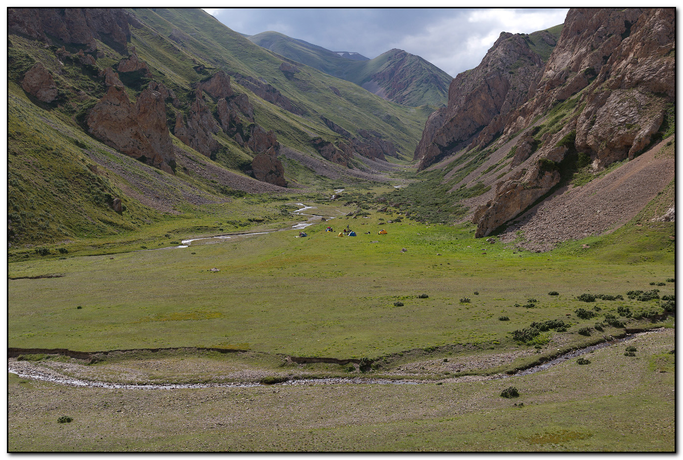 Первый палаточный лагерь 1, расположен на одной из террас реки Арчалы-Тор (2560 м) в окружении великолепных ландшафтов. В окрестностях древние курганы, фотогеничные пейзажи.